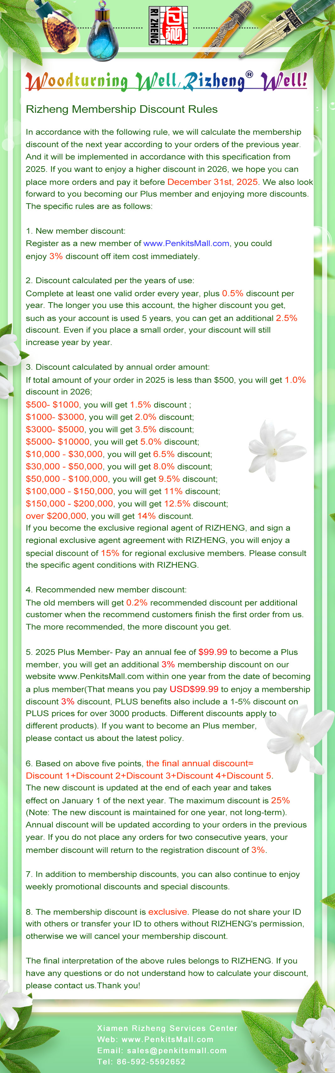 Note: Our prices in 2026 are in counting. Maybe some prices will rise because of rise of raw material, labor cost, etc on our website. Please catch this promotion in the last month of 2025. If you have a new order plan, we suggest you could arrange for them in advance, thank you. The larger the annual order amount in 2025, the more discount you can enjoy in 2026, kindly take note and know more details about Rizheng Membership Discount Rules on this link https://www.penkitsmall.com/data/20251211173837_22.jpg , thank you.